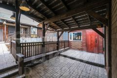 На участке расположены баня, гараж, парковочное место, зона для приготовления барбекю, хозяйственный блок и мастерская.