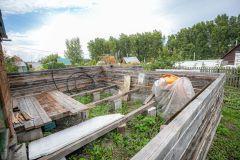 Основное строение — двухэтажный дом-баня из строганного бруса 100150 мм, возведенный на надежном фундаменте с возможностью расширения. Электричество подведено, летнее водоснабжение работает круглосуточно в сезон, вода и электричество заведено в дом. На участке есть уличный туалет. Баня оборудована просторной парилкой с печью и лечебными камнями из Хакасии, что делает ее готовой к использованию.