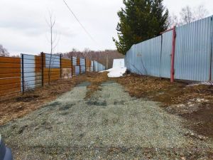забор: металлическая сетка + декоративные деревянные элементы
