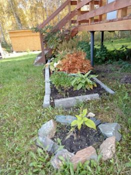 Участок — ровный, ухоженный, 6 соток, засажен газоном.