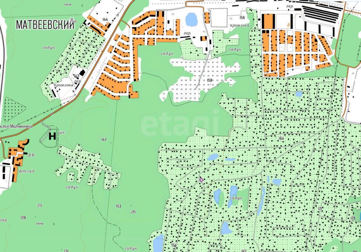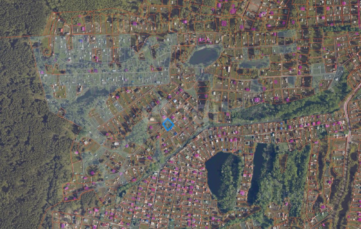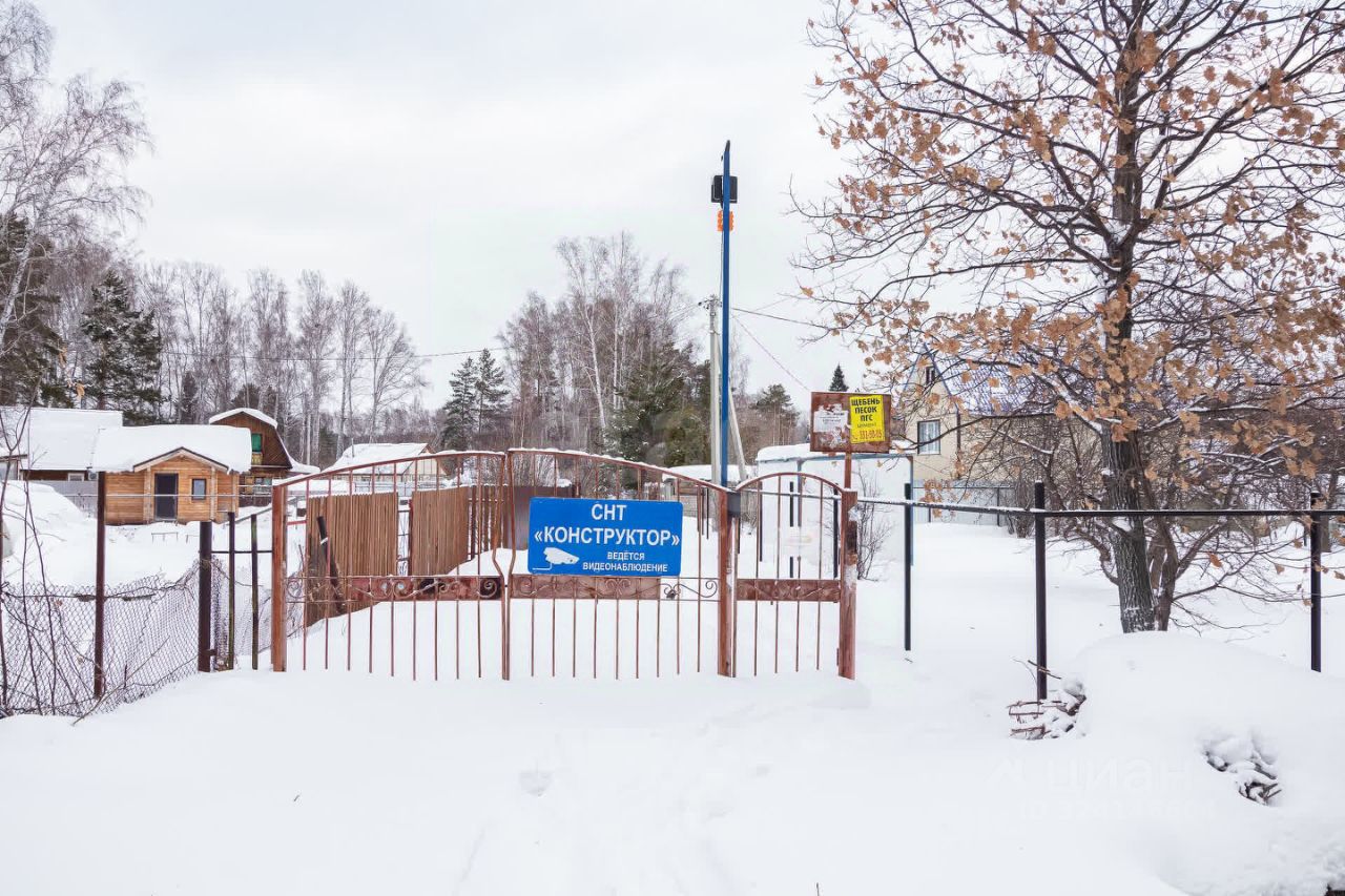 Земельный участок площадью 608 кв. м расположен в НСТ "Конструктор" в Первомайском районе Новосибирска, вблизи поселка Матвеевка.