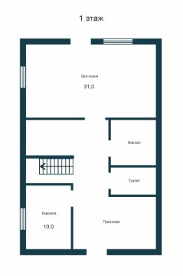 - На первом этаже: просторная прихожая, раздельный санузел, большая гостиная с выходом на участок, комната 10 кв.