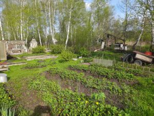 На большом участке почти 10 соток располагается баня из бруса, беседка, гараж, имеется погреб, хоз. постройки, теплица, все посадки.