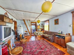 Имеет общую площадь 76,9 кв. м, из которых 50 кв. м — жилая площадь. На первом этаже расположена кухня площадью 12 кв. м и жилые помещения..