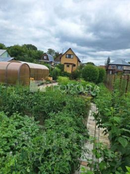 3. Третья часть - огород с двумя теплицами, плодоносящими деревьями и кустарниками, а также грядками для клубники, трав и корнеплодов. Все дорожки выложены тротуарной плиткой.
