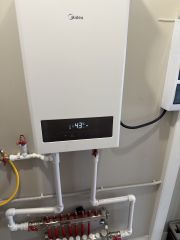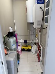 Отопление:электрокотел, теплый водяной пол ,контроль и управление автономное , с возможностью контроля через смартфон.