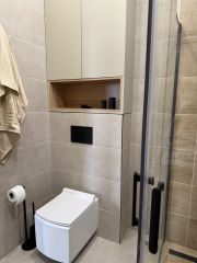 Ремонт: стены под покраску, пол-ламинат, 33 класса, керамогранит в ванной.