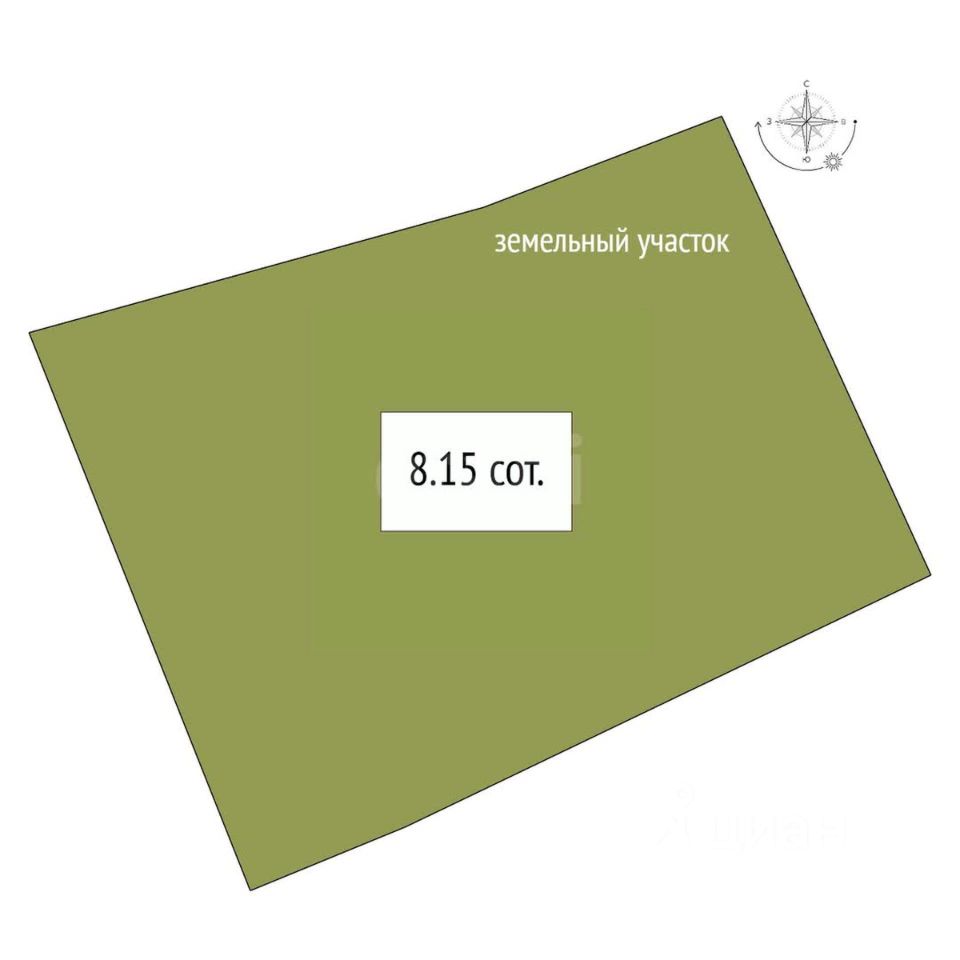 Земельный участок площадью 8,15 соток в собственности предлагается для строительства загородного дома или дачи.