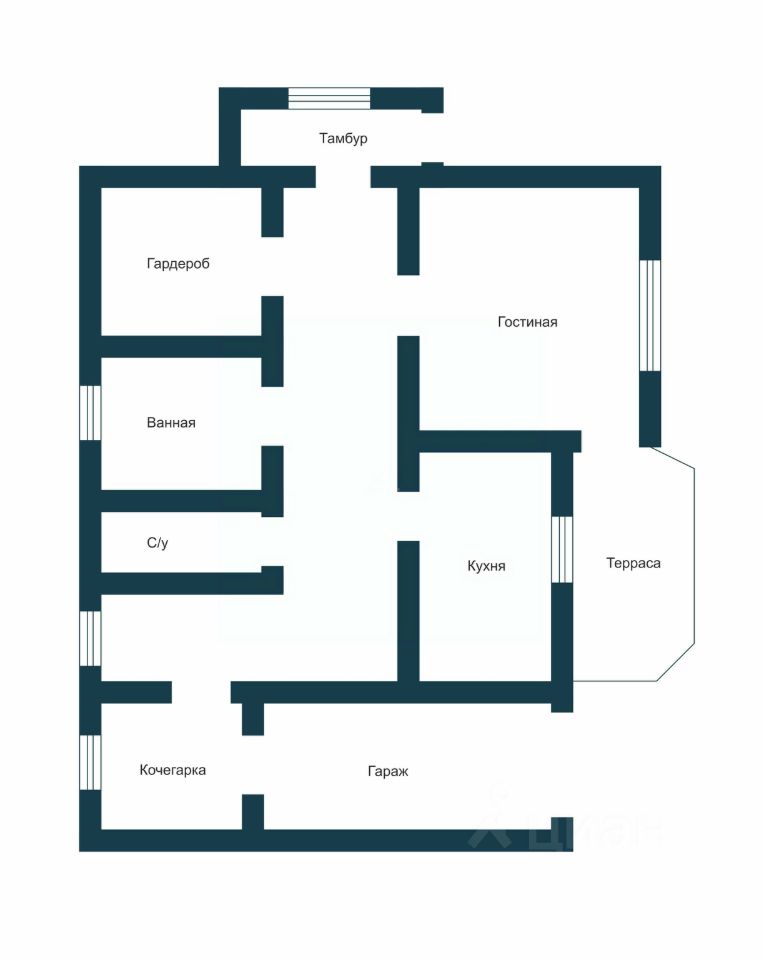 Из зала выход на террасу большую.