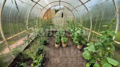 На участке баня 2,5х3,5 из бруса 2020 года постройки, две поликарбонатные теплицы 4х3 и 4х6, имеется хозблок металлический. По периметру участка установлен забор из профлиста. Есть выделенная мангальная зона.