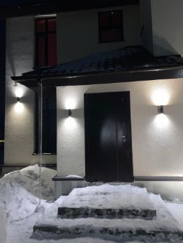Наружная отделка дома выполнена с применением европейских фасадных систем высокого качества (Caparol).