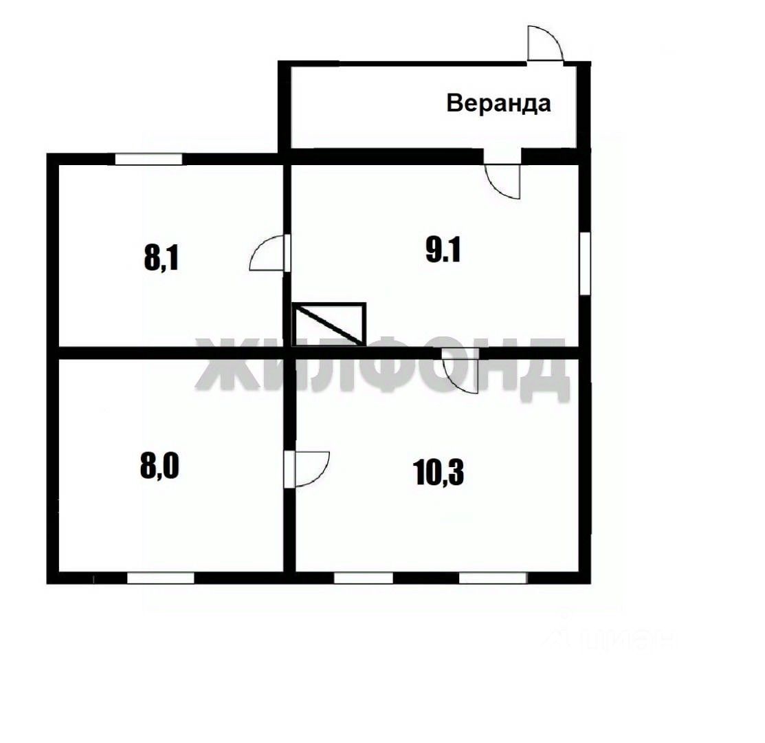 В доме 3 комнаты (гостиная и 2 спальни), кухня и крытая веранда.