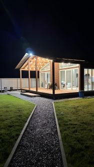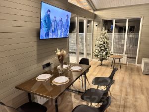 Есть большой летний бассейн со всем фильтрующим оборудованием. Батут. На террасе 2 подвесные качели, стол и сиденья.