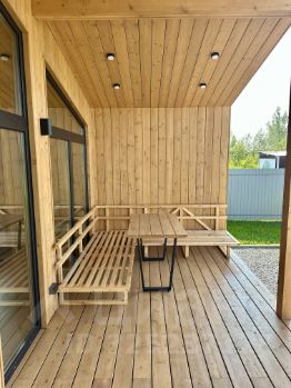 Построена каркасная баня 15 кв.м + терраса 10 кв.м. Обязательно на свайном фундаменте и с канализацией. Парилка из липы, установлен мощный котел. На стене пано из можевельника. Парящие полки с подсветками. Вентиляция Басту. Второе дыхание.