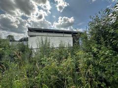 Идеальное место для строительства дома. На участке стоит контейнер для хранения инвентаря.