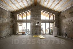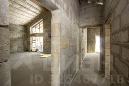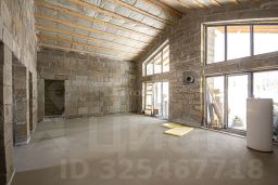 Общая площадь дома составляет 187 кв. м., жилая площадь - 84 кв. м., площадь кухни - гостиной — 43 кв. м., высота потолка 5,40 м., второй свет, панорамные окна с выходом на большую террасу, 30 кв. м. и выходом в лес.