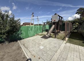 На участке установлена детская игровая площадка,теплица, несколько грядок для зелени, есть место для бассейна. Есть плодово-ягодные растения (яблоня, слива, клубника, смородина, малина, крыжовник, жимолость).