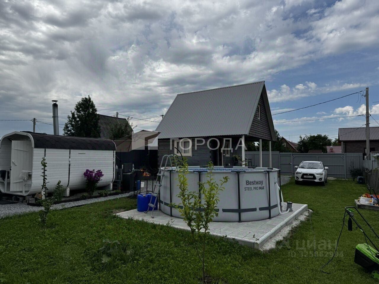 Прекрасная рыбалка, комфортный дом с террасой, бассейн и баня. Совсем немного грядок для своего удовольствия, кустарники ягоды в основном. В перспективе растет небольшой садик.