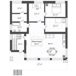 Дом: одноэтажный, 150 м² — выполнены 6 стен, установлены 2 окна, крыша перекрыта. Отличный старт для завершения строительства под ваш дизайн.