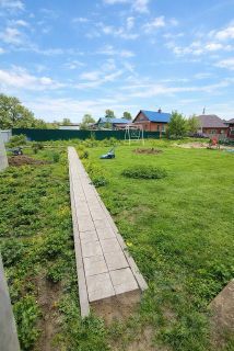 Фактическое использование участка 14 соток — выровнен, огорожен, с двумя въездами. Здесь уже есть всё для жизни: новая двухэтажная баня с двумя комнатами (нужно только доделать внутренние работы, и можно пользоваться), теплица 3х6 с отоплением и электричеством, фундамент под бассейн, колодец, саженцы ореха, ягод и даже парковка на три машины около дома. Под баней есть погреб 4 квадратных метра!