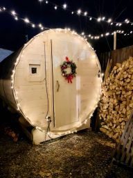 На территории есть кедровая баня-бочка и горячая купель Фурако (аналог чана, но гораздо удобнее).