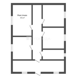 Дом площадью 87,2 кв. м с четырьмя комнатами (+ маленькая комната свободного назначения, например, гардеробная, + возможность достройки второго этажа (предусмотрено место для размещения лестницы)