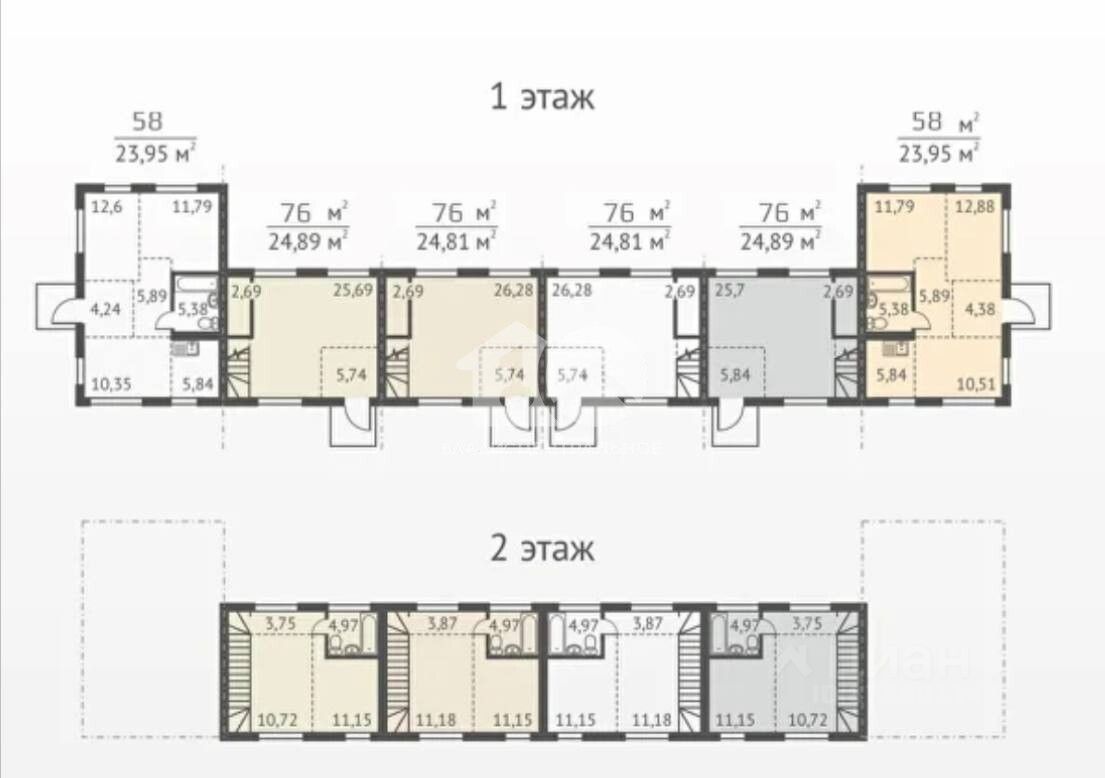 В наличии есть еще 2-этажные таунхаусы площадью 75 кв. м.