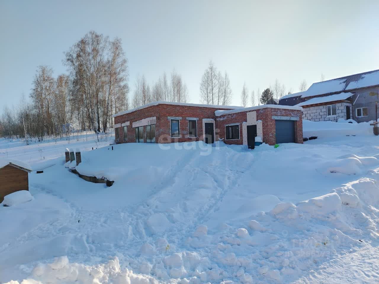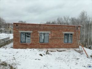 Материал стен - кирпич, установлены окна, двери. Возведены перегородки. Дом отапливается.