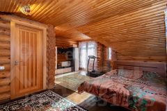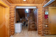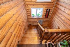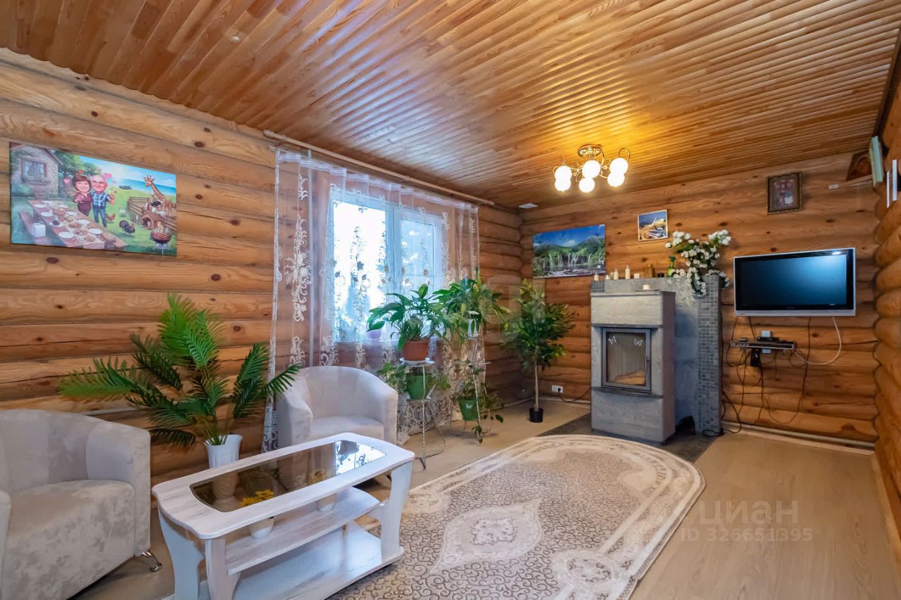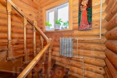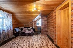 Дом выполнен из бревна. Есть уютная терраса.