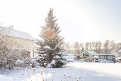 Территория имеет ровную прямоугольную форму, полностью огорожена, что обеспечивает приватность и безопасность. Коммуникации на участке включают летнее водоснабжение, а также доступ к городской воде и газу. Электричество подведено к границе участка.
