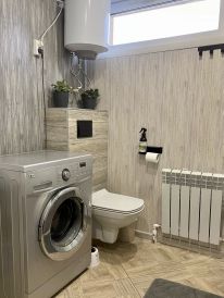 В дом заведен газ. Установлен двухконтурный котел, который обеспечивает теплый пол во всем доме, горячую воду и работу газовой плиты. Дополнительный бойлер на 200 л — комфорт для большой семьи. Зимой здесь очень тепло, а летом сохраняется приятная прохлада благодаря массивным деревянным стенам.