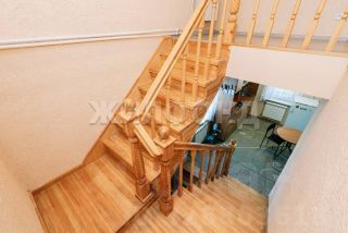 3-уровневый дом 2008г.п. на ленточном фундаменте, стены - сибит 600*400, утеплен минватой 100 и облицован металлическим сайдингом; межэтажные перекрытия - лиственница 200*250 + звукоизоляция, тепло- и пароизоляция, влагостойкая фанера 200, на лагах - деревянная доска 50, ламинат; кровля - ондулин. Окна ПВХ. Высота потолков 2,8м. Полы - бельгийский ламинат.