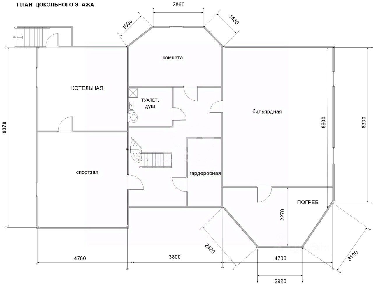 -продуманный цоколь, где разместились котельная, спортзал, прачечная, санузел с душем, гардероб, овощехранилище, биллиардная, выход в гараж и на участок.