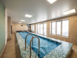 - Зона бассейна (7 м в длину), душевая. Бощая площадь 50 кв метров. С выходом на террасу