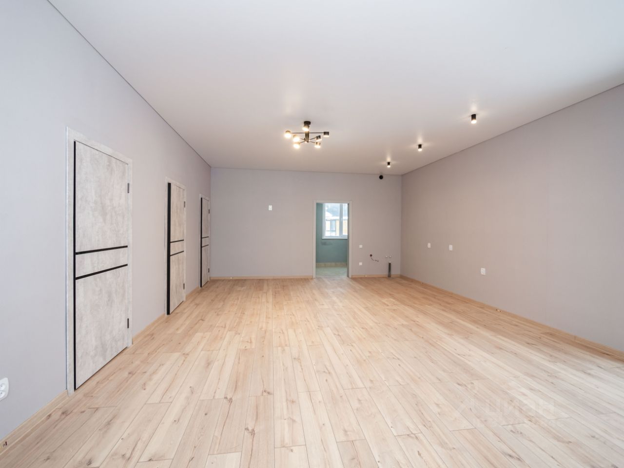 В прихожей, санузле и гардеробной уложен керамогранит. В кухне-гостиной и спальнях ламинат. Стены оклеены обоями. Во всех комнатах - теплый пол.