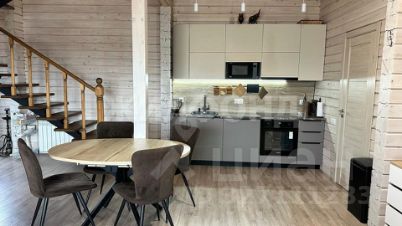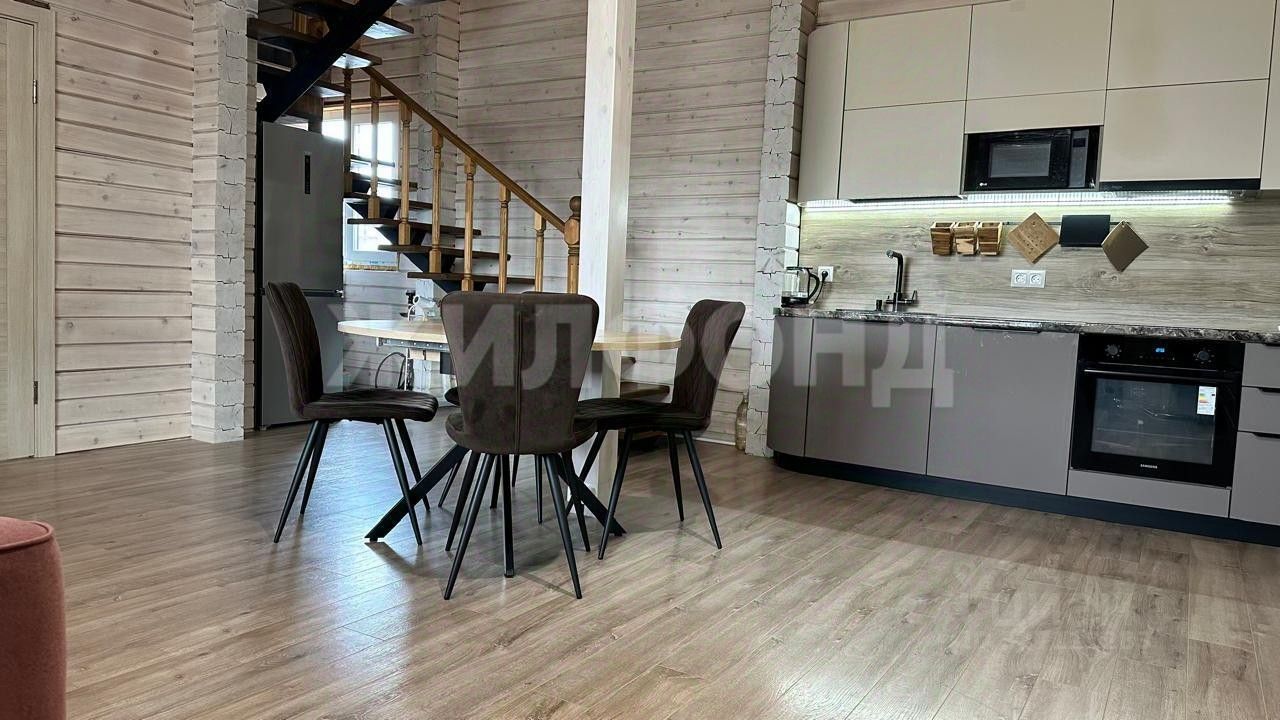 На первом этаже расположены просторная кухня-гостиная, спальня, санузел, душевая с сауной, прихожая, котельная. На втором этаже две спальные комнаты, санузел. Сделан качественный ремонт, в доме прям чувствуется аромат бруса! Окна французские, лестница металлокаркас - ступени бук. Новому собственнику остается вся мебель!