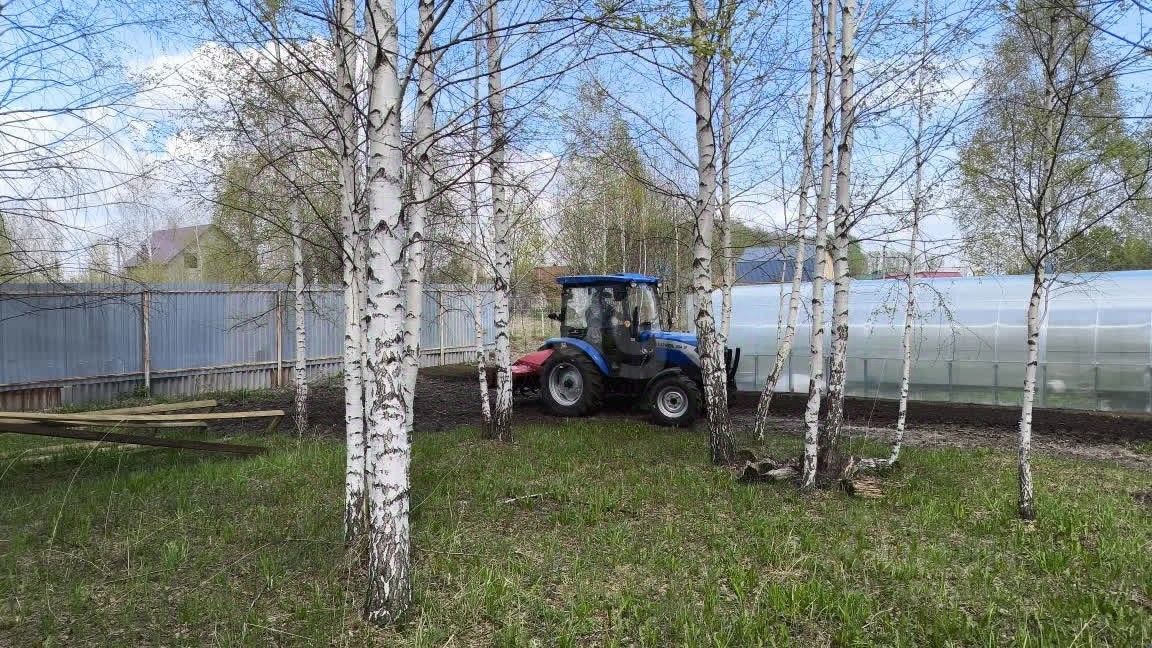 Просторный участок окружен живописными березами, создающими уютную атмосферу и обеспечивающими приятный микроклимат.