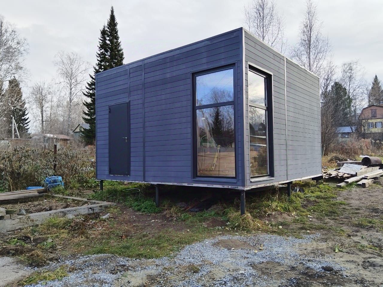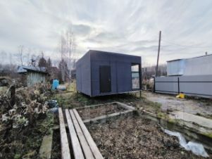 На частвке площадью 6 соток расположен модульный дом размером 5.2*5.2, В доме планируется санузел, на фундаменте перед домом будет терраса. Участок огорожен 3D забором с двух сторон, с одной стороны сетка-рабица, с наружной стороны - забор из проф.листа. также весной планируется отсыпать парковочное место.