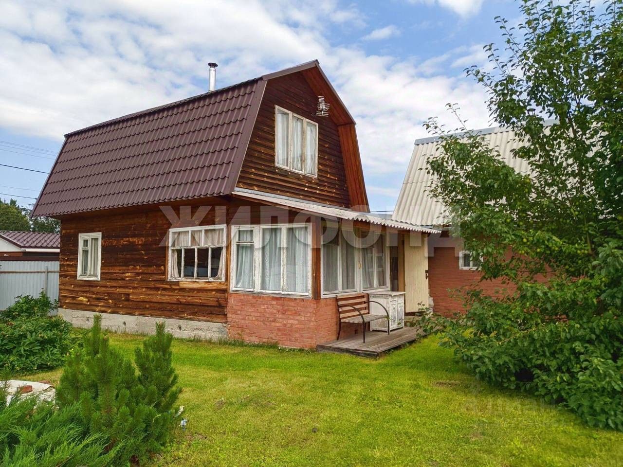 Участок восемь соток, широкий. Дом из бруса, второй этаж высокий. Фундамент ленточный с вентиляцией. В доме две больших комнаты. Кухня гараж кирпичные, баня обшивка осина. Крыльцо настил из осиновых досок. Интернет кабель стекловолокно. Ограда профлист с двумя воротами. Свой колодец с насосом, водонаборный бак. Две теплицы. посадки плодовые деревья груши, яблони, кустарники и декоративные растения.