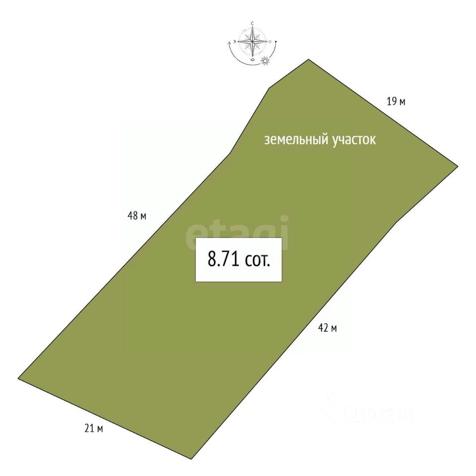 Площадь: 8,9 соток ровной, правильной формы.