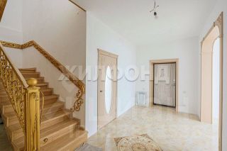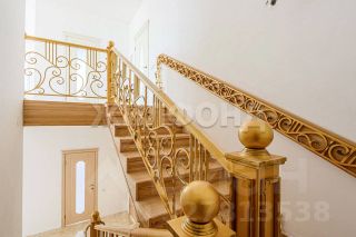 Лестничные ступени выполнены из ясеня, перила - красивейшая ковка ручной работы, дорогие входные и межкомнатные двери, напольные покрытия, плитка.
