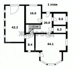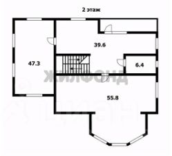 II этаж - лестничный холл с выходом на балкон, 2 спальни (56 и 47 кв.м.), санузел.