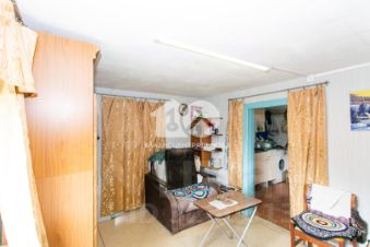 В доме есть всё необходимое для комфортной жизни: две комнаты (11,1 и 10,4 кв. м), кухня (9 кв. м) с косметическим ремонтом, потолки (2,5 метра). Материал постройки — дерево, кровля из шифера.