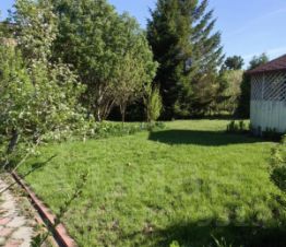 Есть беседка. Участок ровный, ухоженный, с плодородной землей и зелеными насаждениями. Посажены груша, сливы, ранетка, кусты жимолости, вишни, кусты черной, красной и белой смородины, ирга, облепиха, крыжовник. Посеян газон, растут ели, туи, сирень. Есть поливочная вода.