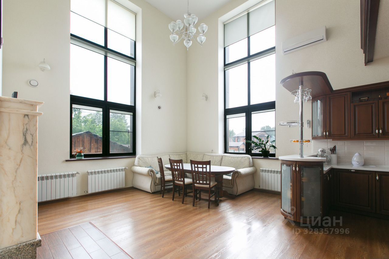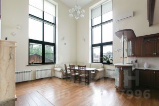 Большой зал-кухня с мощным кондиционером и с высотой потолка 6 м. Высота окон 5 метров.