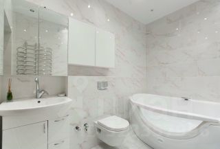 Две спальни. Большой зал с возможностью установки кухонного гарнитура, осуществлена подводка канализации. Санузел с джакузи 600 л., унитаз с гигиеническим душем.
