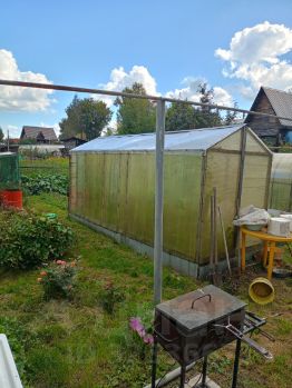 В огороде три теплицы, кусты смородины (чёрная и красная), жимолость, малина, крыжовник, ирга, вишня, яблоня полукультурка, садовые клубника и земляника.