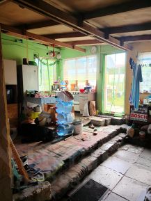 Из надворных построек, объединённых под одной крышей в летнюю кухню, есть баня с раздельными мойкой и парилкой, сарай, гараж на одну машину. Отдельно стоит сарайчик под дрова.