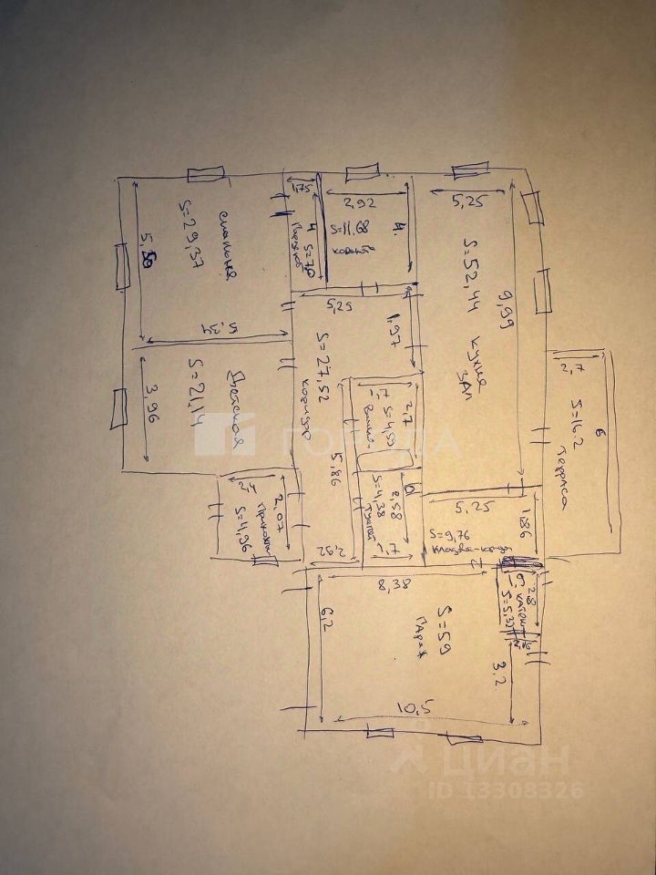 - Высота потолков: - кухня-гостиная — 3,5 м - комнаты — 3 м