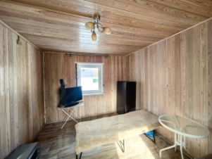 На первом этаже дома, кухня-веранда, комната. Отапливается домик эфективной